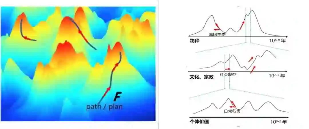 (1)生物进化的尺度: 跨越数十万到亿年。这个尺度的价值函数往往是由基因突变带来的进化导致的,不受当下人类的控制和左右,除非基因编辑技术的发展能够精准到改变我们的价值函数!