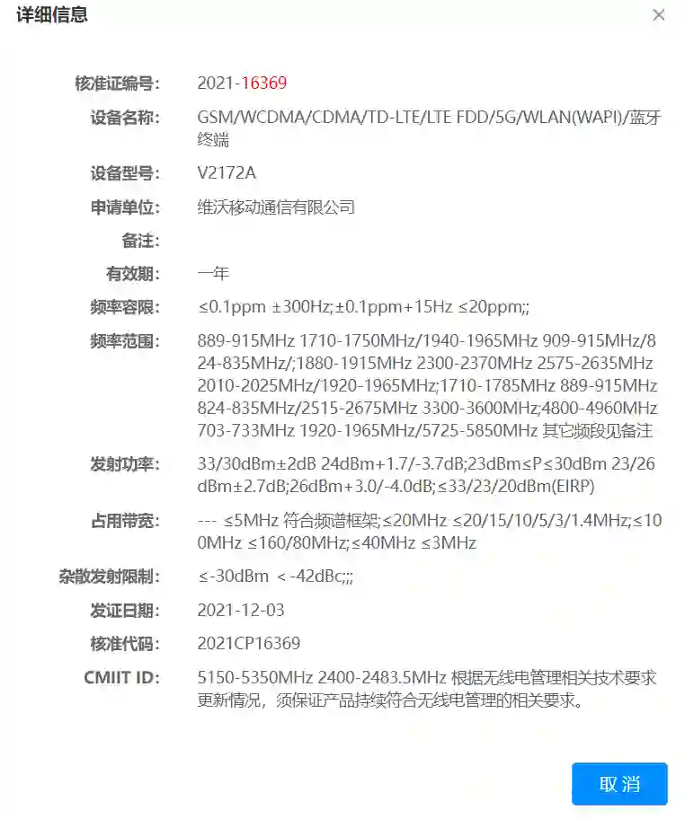 据媒体爆料,将于 2022 年第一季度发布搭载高通骁龙 8 Gen 1 芯片的 iQOO 9 系列信息已经出现在了 IMEI 数据库,型号为 V2171A 和 V2172A。据了解,目前只入网了型号 V2172A 的手机,据说这是 pro 版本,发证日期为 12 月 3 日。据此前爆料,该系列手机预计将包含标准版以及 iQOO 9 Pro / 传奇版,至少一款机型支持 120W 快充。预计 iQOO 9 系列手机将继承上一代的外观,电池容量 4500mAh 起,预装 Android 12 系统。