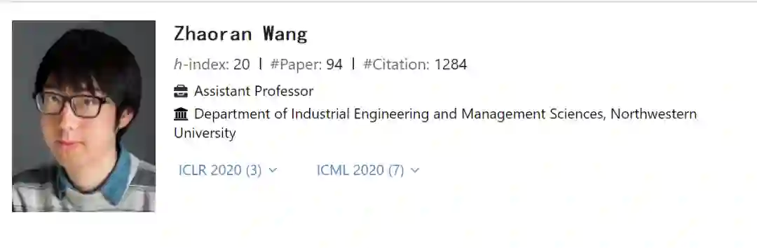 Zhaoran Wang 以 7 篇文章入选本次 ICML 会议位居华人贡献榜第二。