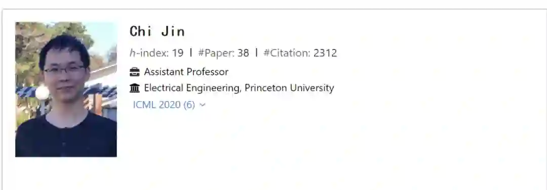 Chi Jin 现任普林斯顿大学电气工程助理教授。他在加州大学伯克利分校获得计算机科学博士学位,由 Michael I. Jordan 担任导师。在此之前,他在北京大学获得了物理学学士学位。研究兴趣在于机器学习、统计和优化。