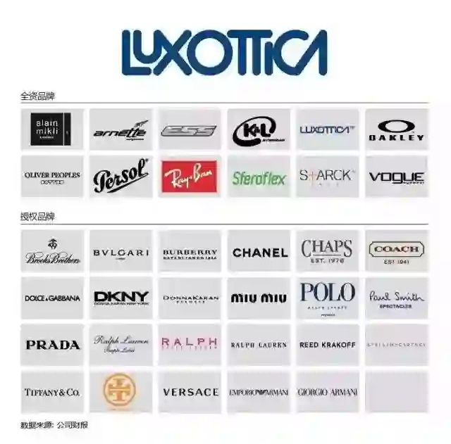 Luxottica 奢侈品销售额为100.51亿美元,眼镜业务2016年同比增长2.8%。主要品牌:Ray-Ban, Oakley, Vogue Eyewear, Persol, Oliver Peoples