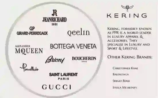 开云集团奢侈品销售额93.69亿美元。年增幅7.7%。主要品牌:Gucci, Bottega Veneta, Saint Laurent, Balenciaga, Brioni, Sergio Rossi,Pomellato, Girard-Perregaux, Ulysse Nardin