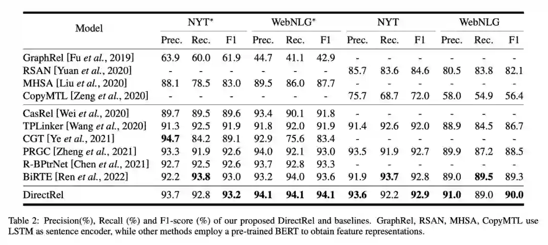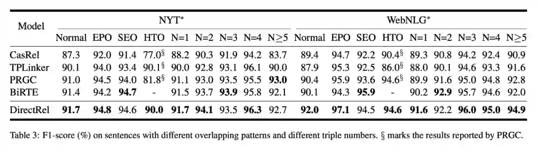 从表 3 中,作者根据实体的嵌套情况和句子中包含实体的长度,把测试集划分成了 18 个子测试集。DirectRel 在 18 个子测试集的 15 个上取得了最佳的性能。