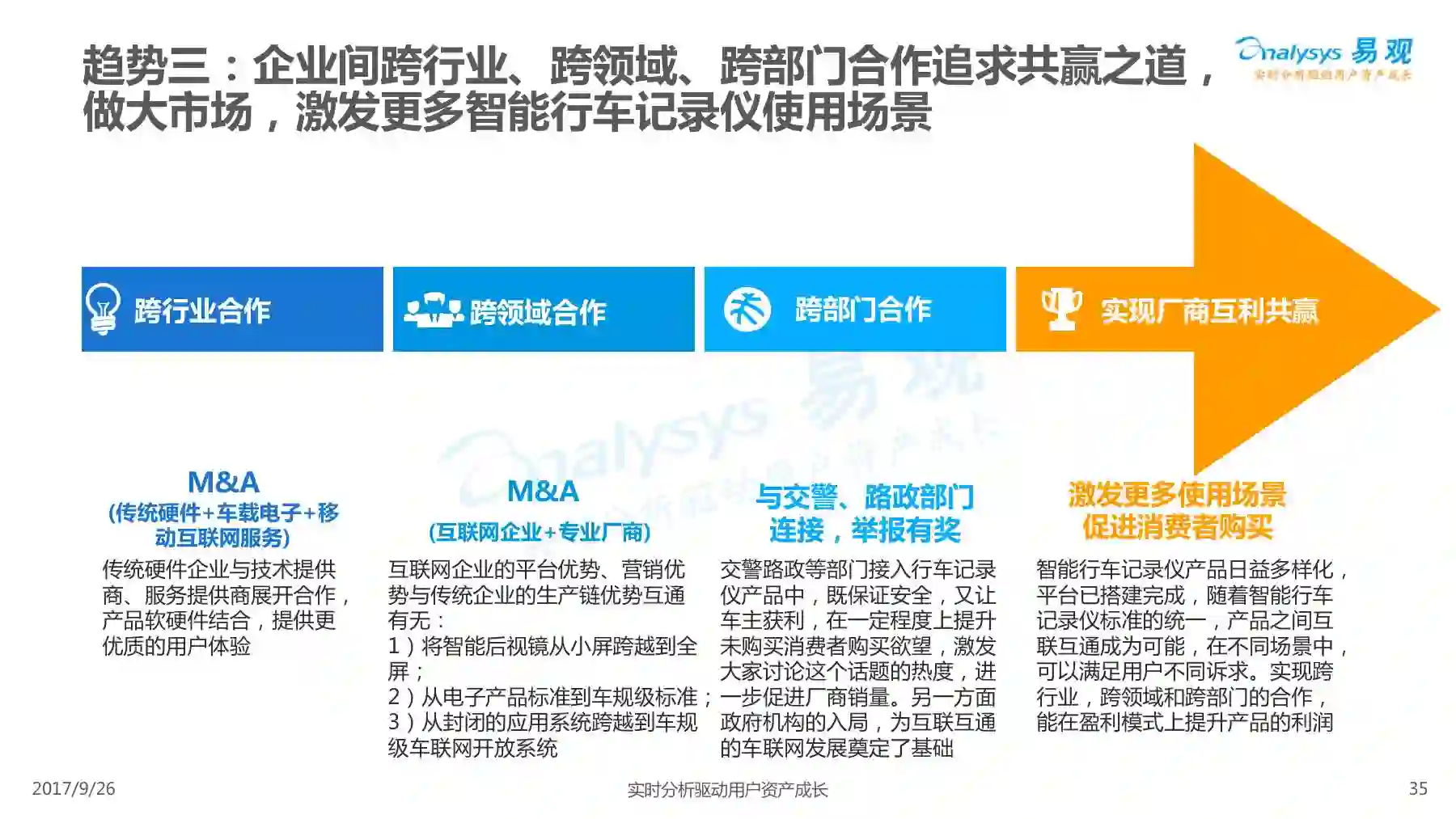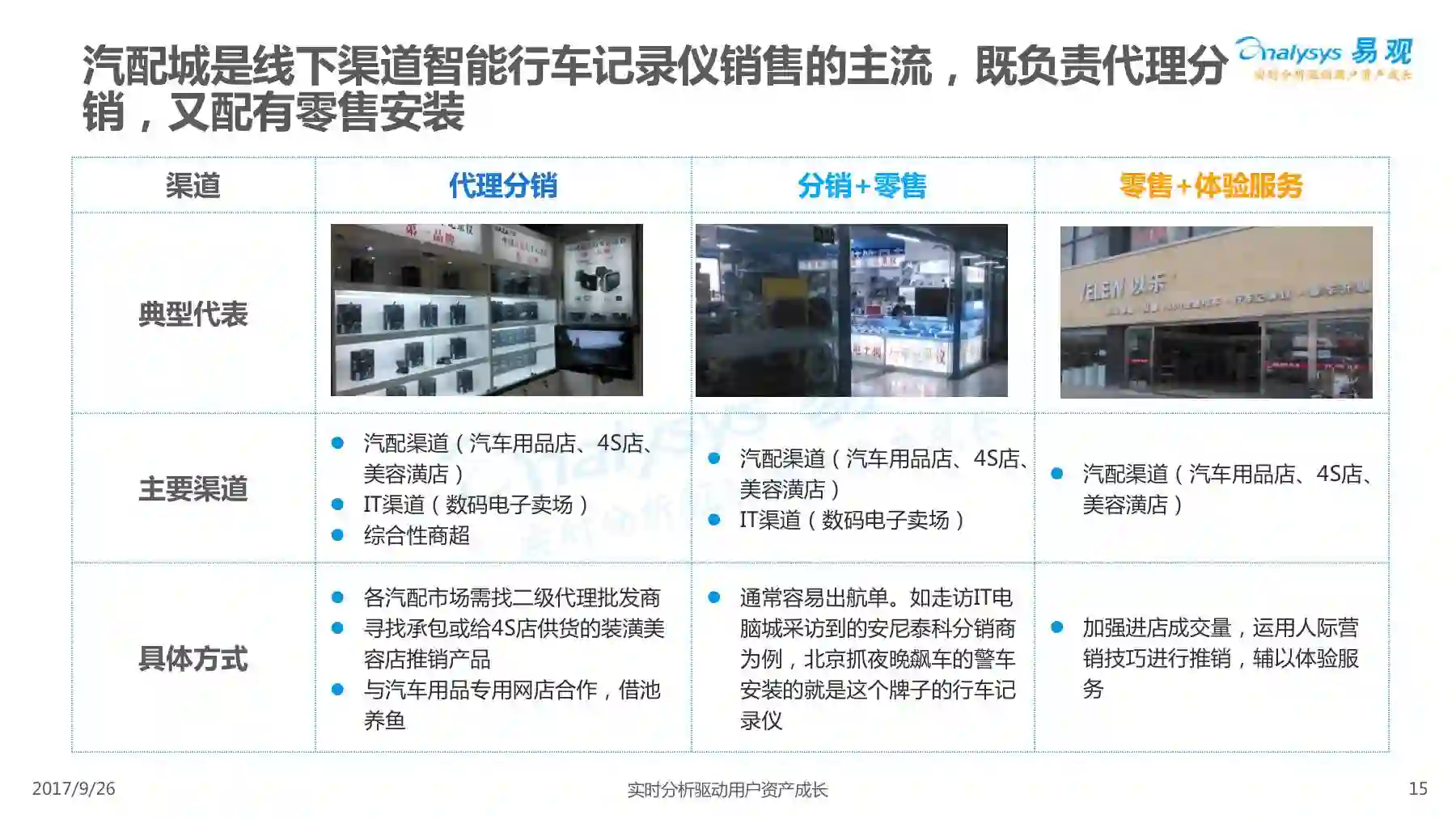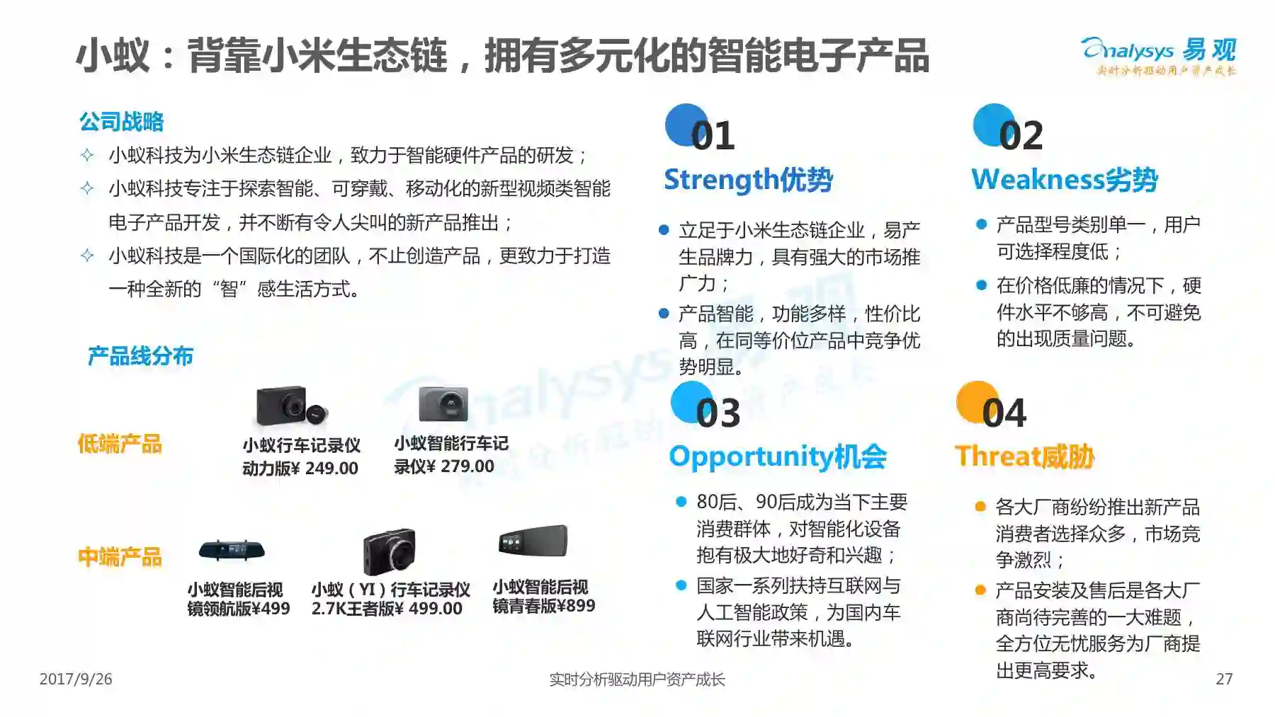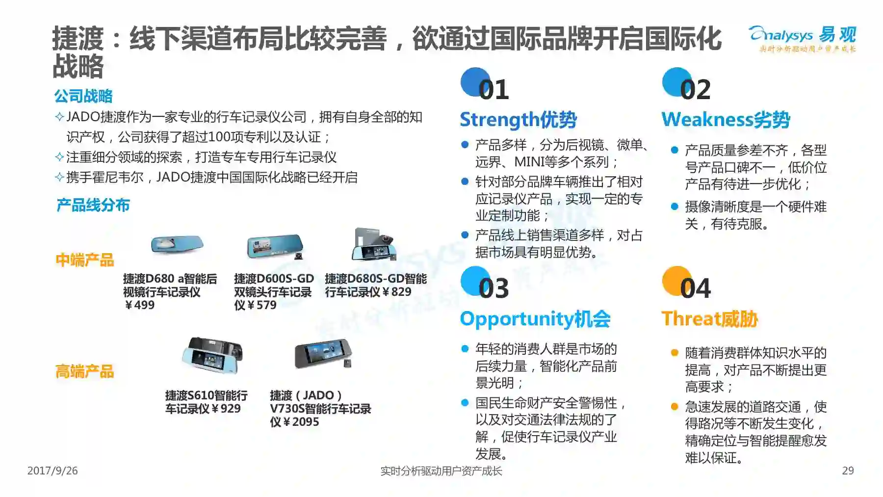 行车记录仪产品经过一系列演进历程,产品形态越发丰富,产品功能越发智能,智能行车记录仪渐成主流,线上渠道是智能行车记录仪的主要销售渠道,进驻智能行车记录仪行业的企业驳杂,当前市场鱼龙混杂,主要可以划分为六大厂商类型。 本次分析主要针对中国智能行车记录仪市场进行分析,涉及到智能行车记录仪、人工智能、车联网等多个方面。