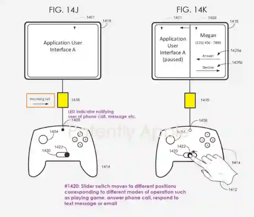 第一种手柄设计在外观与键位布局上神似任天堂 Switch 的 Joy-Con 手柄 ,能够将 iPhone 和 iPad 变成一个便携式游戏设备,从横竖皆可的使用方式来看,大概率是无线连接。