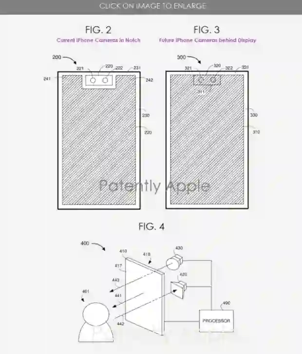 不过,苹果最新获得的一项专利给了我们希望。美国专利商标局刚刚公布了苹果的一项专利,该专利消除了 iPhone 的刘海,将 iPhone 的 Face ID 前置摄像头隐藏在屏幕下方,解决了异形刘海屏所带来的视野遮挡,带来真正的全面屏视觉观感。