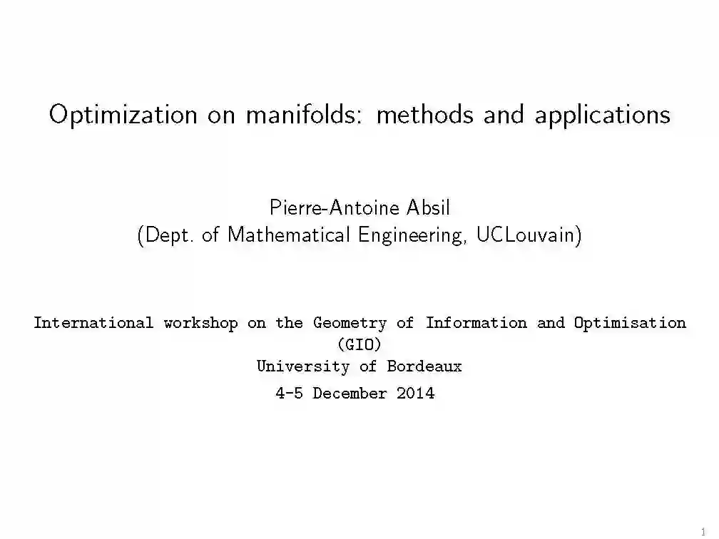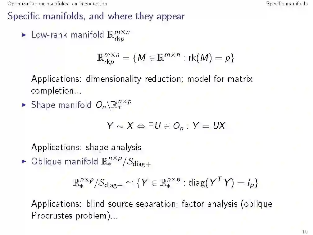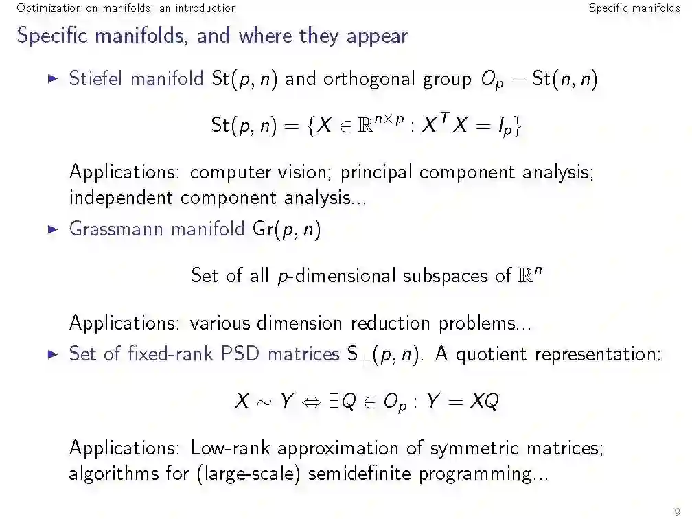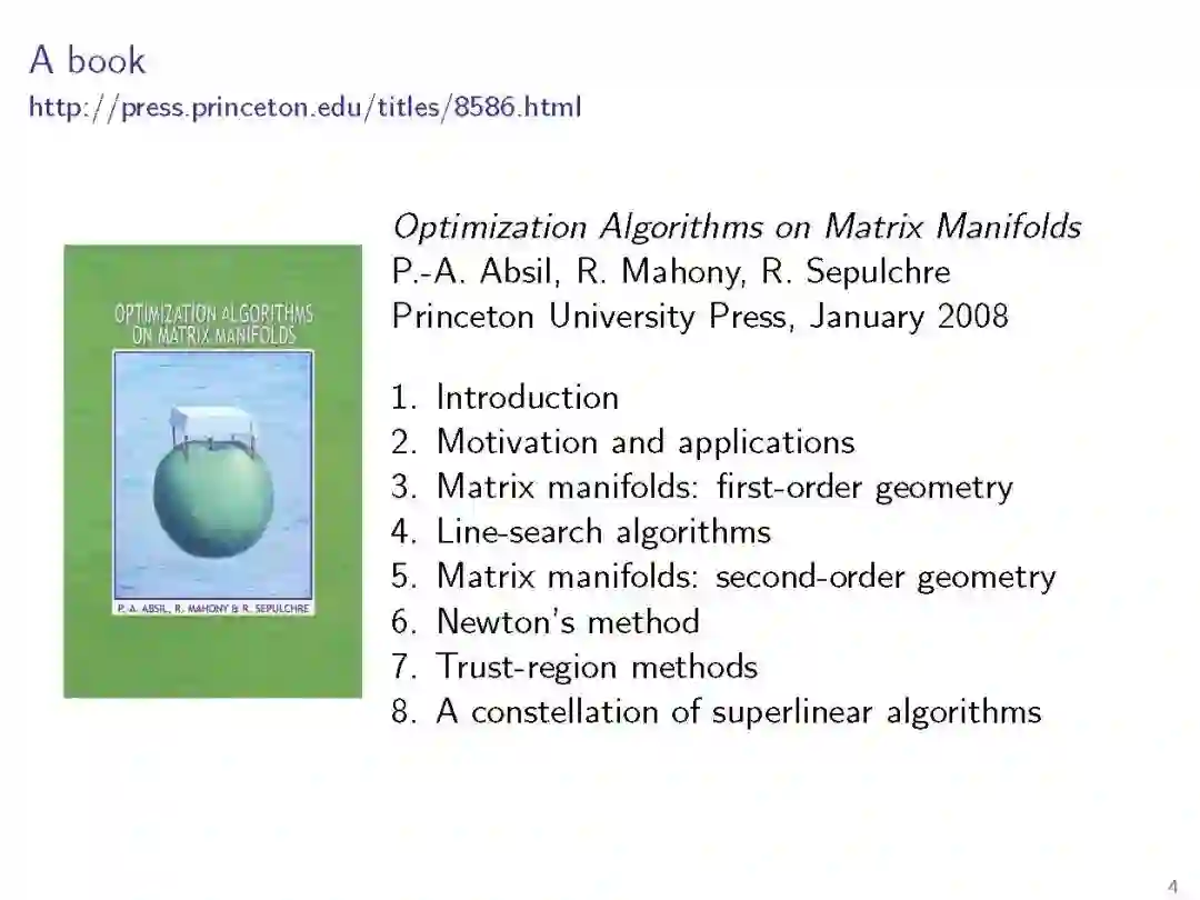 矩阵流形上的优化算法提供了在线性代数、信号处理、数据挖掘、计算机视觉和统计分析中广泛应用的技术。它可以作为研究生水平的教科书,对应用数学家、工程师和计算机科学家感兴趣。