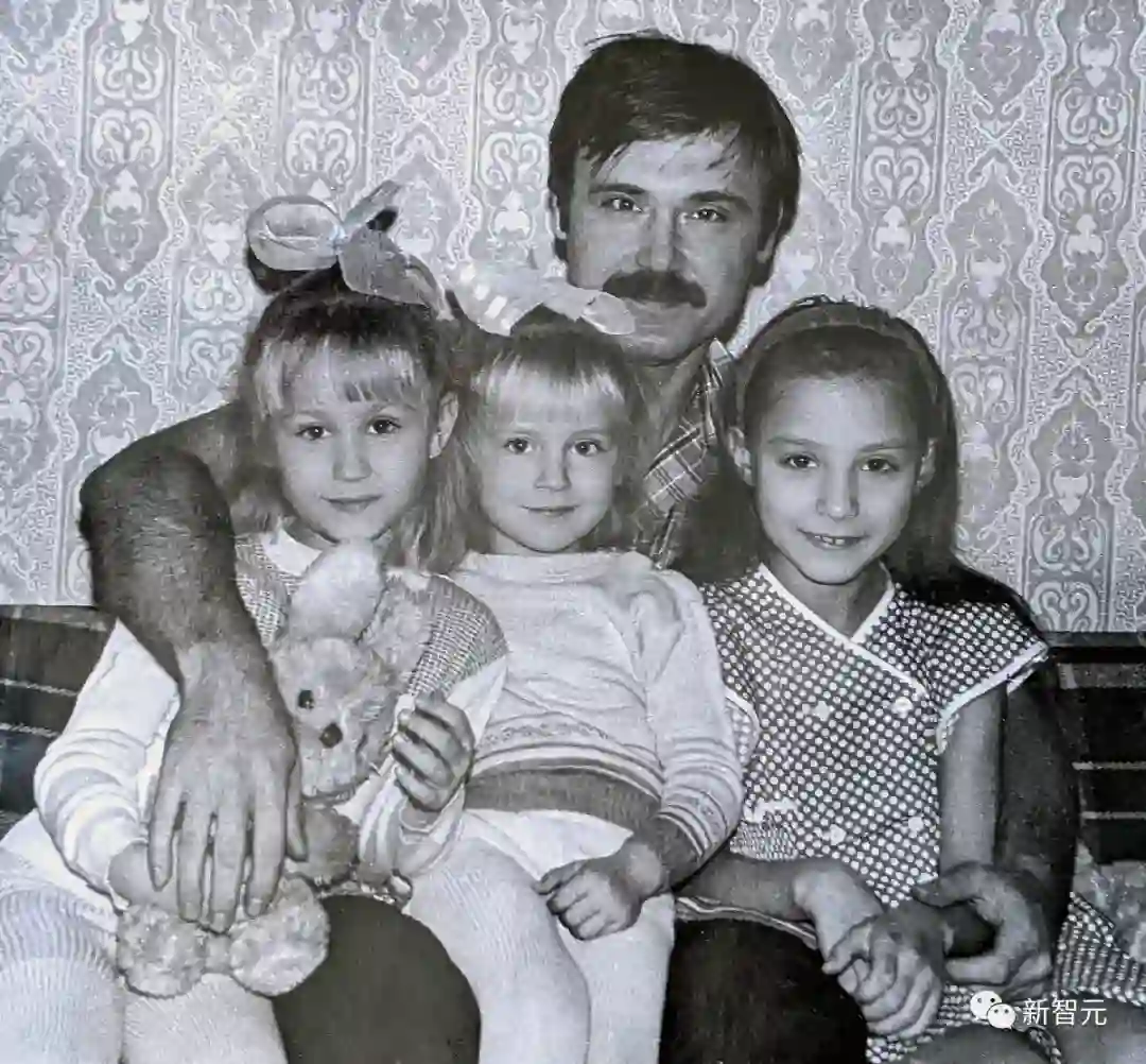 大约7岁的Viazovska(右)与父亲和两个姐妹在基辅的公寓里