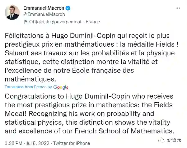 Hugo这次获奖连法国总统马克龙都发推祝贺,分量有多重大家应该都懂。