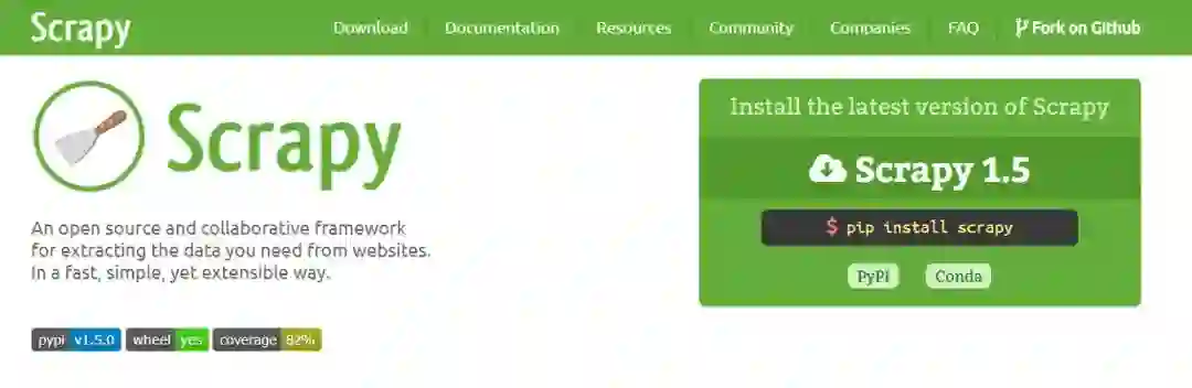 Scrapy是一个很棒的开源 Web 挖掘工具。它可以帮助你从网站中提取数据,可以管理请求,保留用户会话,遵循重定向和处理输出管道。