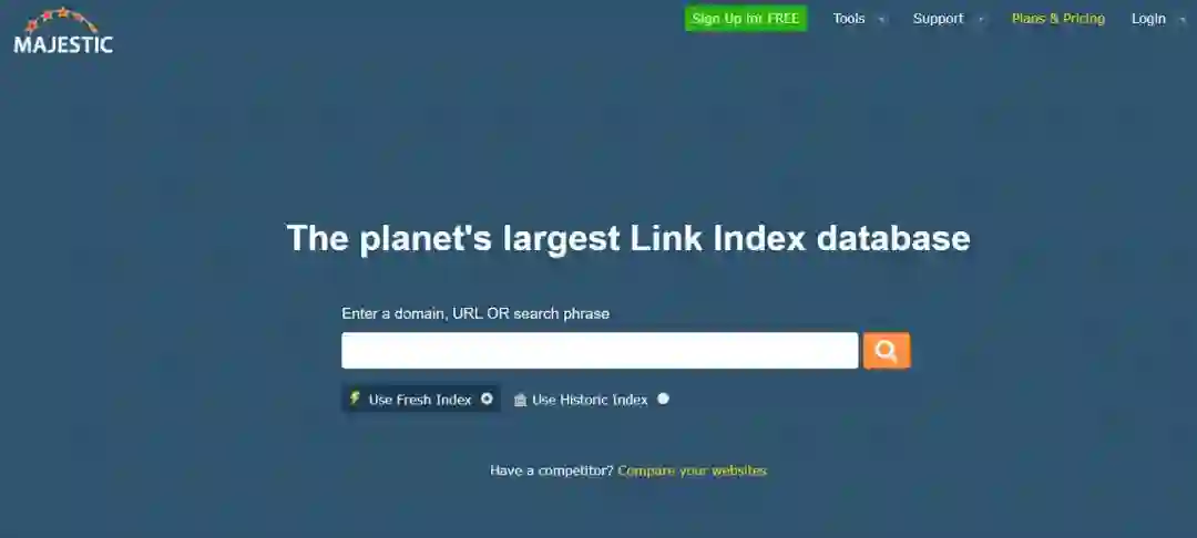Majestic 可以帮助你访问世界上最大的链接索引数据库。你可以获得可靠的最新数据,以便分析网站和竞争对手的表现。它还可以帮助你通过链接分析或链接挖掘对每个页面和域进行分类。