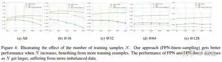 3 FPN、FPN-finest有点例外,随着N数量增大,性能下降了,原因也很简单,此时正负样本数量更不均衡了;