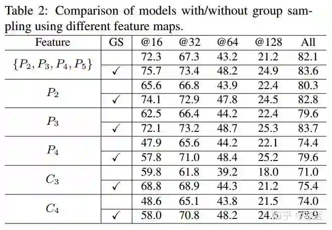 本文发现,尺度分布不均衡问题在正负训练样本中都存在,group sampling恰好为此而生,专门解决该问题,并取得了不错的性能;