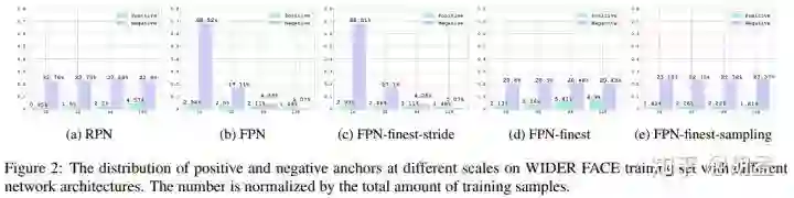 从fig 2中可知不同检测算法中,各个尺度anchor中正负样本数所对应的比例,对应的结果如table 1,结论如下: