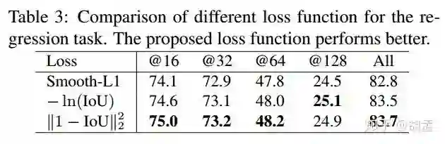 对比smooth-L1 loss,新的损失函数直接优化的IoU ratio本身,这也是与我们按照IoU计算mAP的评估标准保持一致的(可参照IoU-Net),文中提到UnitBox中IoU loss function = - ln(IoU),但当IoU = 1时,UnitBox中IoU损失函数得到的梯度不为零(non-zero gradient,画个ln(x)函数图就明白了),但IoU least square loss不会,得到zero gradient,起码网络收敛也会更稳定;
