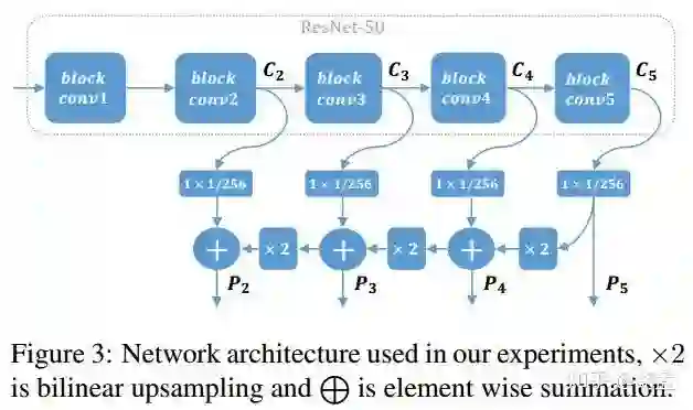 文中使用ResNet-50主干网 + top down + skip connections,如fig 3:
