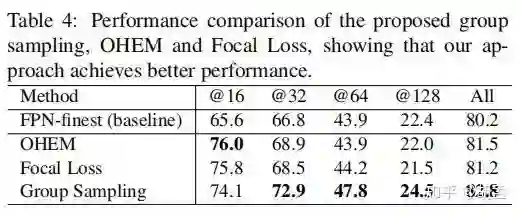 3 本文提出group sampling,实现简单,确保了不同anchor尺度上正负样本的比例分布比较均衡,最终对检测性能有了较大的提升;