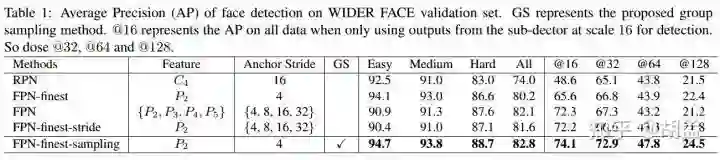 分析影响人脸检测性能的因素,消融实验证明group sampling的性能,并基于FPN finest-layer在FDDB、wider face上取得了sota;