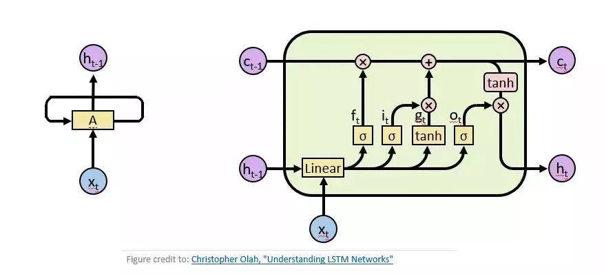 图1 左:经典循环神经网络,右:长短时记忆网络