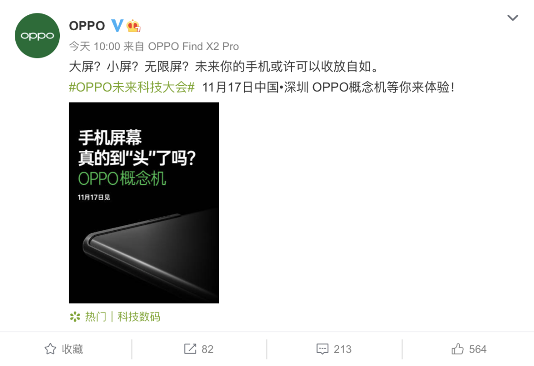 36氪获悉,昨日,OPPO宣布届时将发布概念手机,对外展示OPPO对手机终端形态探索的又一个创新性成果。