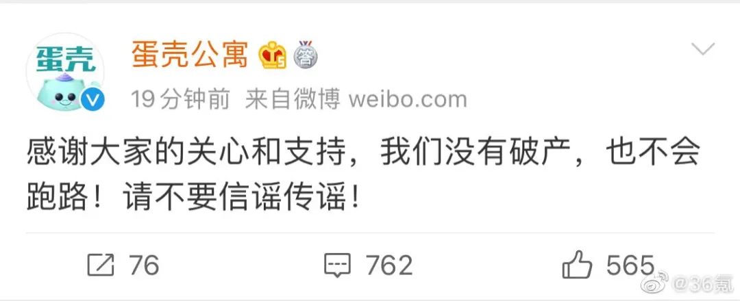 针对网传蛋壳公寓周一(11月16日)将宣布破产,蛋壳公寓公关部回复称,属于谣言。公司目前的确遇到资金困难的情况,但正在积极进行处理。租客和房东等问题,也在积极应对,蛋壳公寓承诺绝不会跑路,请大家放心。这是一个新兴行业还希望社会各方给予支持和理解。(界面)