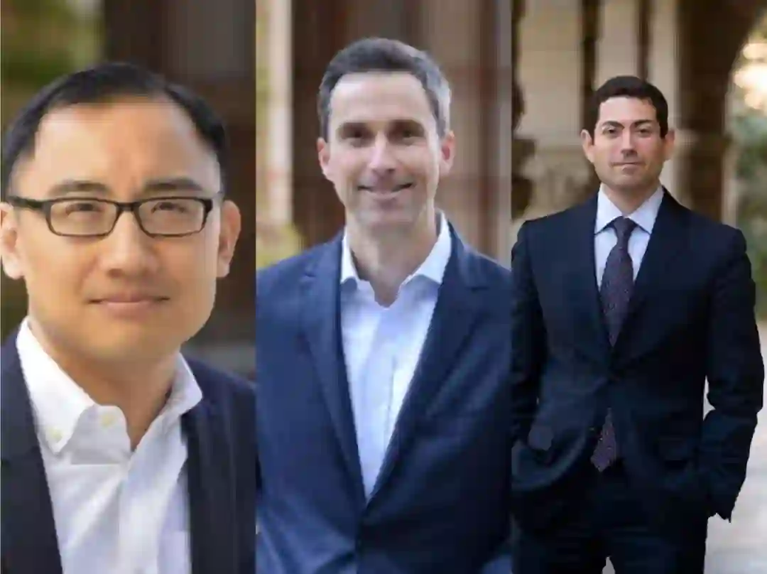 (从左至右:斯坦福法学院教授Daniel E. Ho,David Freeman Engstrom和加州最高法院大法官Mariano-Florentino Cuéllar)