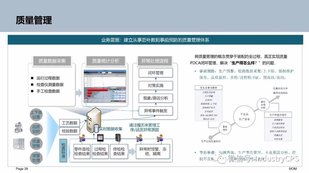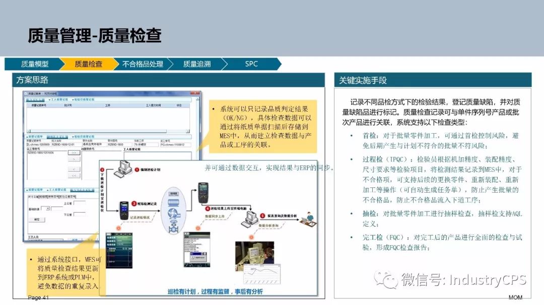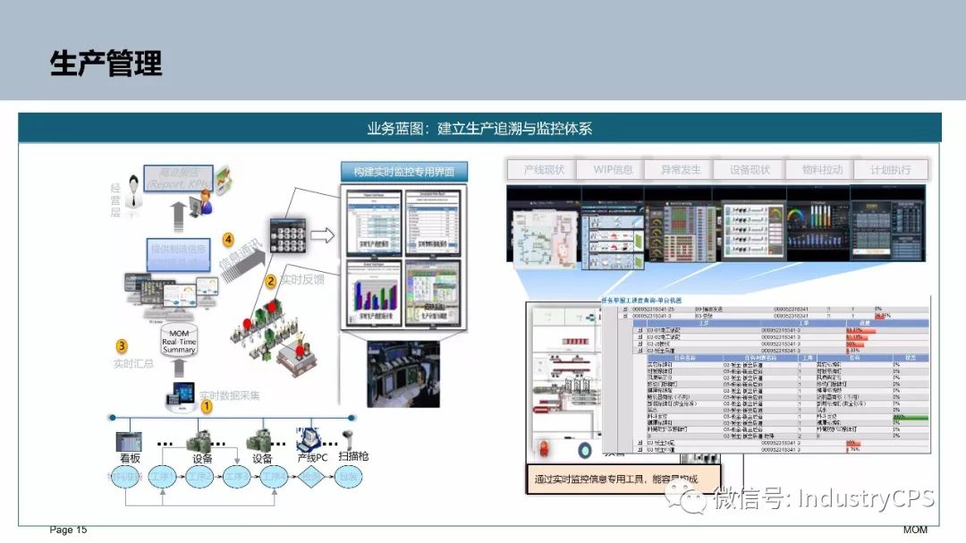 MES就该做第三件事是生产过程的监控。生产过程监控主要是两个方面,一个是任务情况,一个是资源情况。每个生产资源(工人)接到生产指令后何时开始,何时结束?做了多少?质量情况?有什么异常?设备情况?运行数据?这些都是生产现场的数据反馈。这是MES最基本的功能。同时,这也是做好产品的质量管理和质量追溯主要环节。当前热起来的物联网传感器等技术在这里将发挥作用。企业需要的大数据分析应用的主要数据来源也产生在这里。