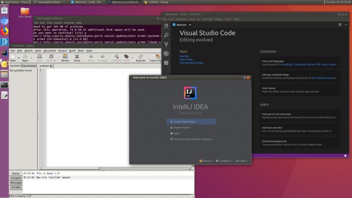 那么在成功运行Linux on DeX之后,我们能做什么呢?首先Linux on DeX预装了桌面版的Chromium(并非Chrome)、Firefox以及完成的LibreOffice办公套件。用户还可以播放视频、音乐,访问YouTube。三星表示Linux on DeX主要应用于开发上,所以集成了IntelliJ的IDEA还有Microsoft Visual Studio Code这样的IDE(集成开发环境)。此外用户还可以安装任意基于ARM64(Aarch64)体系结构的Linux软件包。