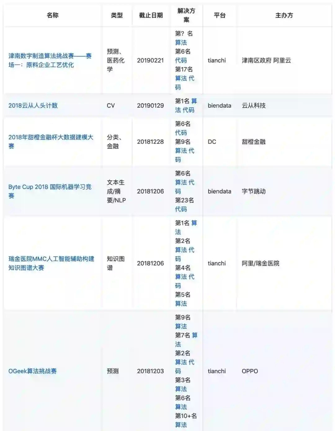 本文整理了国内算法竞赛的各个优胜解决方案及开源代码。