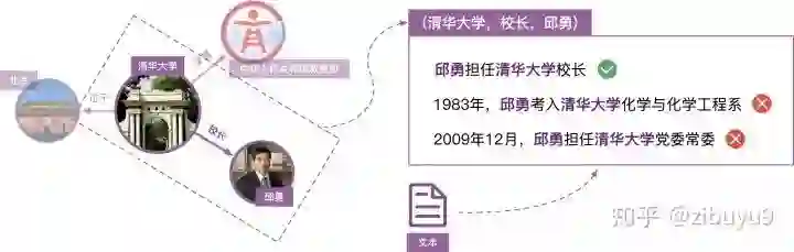 远程监督的这种启发式标注规则是把双刃剑,它是自动标注训练数据的有效策略,但其过强的设定不可避免地产生错误标注。例如对于知识图谱中(清华大学,校长,邱勇)这个三元组事实,句子“邱勇担任清华大学校长”可以反映“清华大学”与“邱勇”之间“校长”的关系;但是句子“邱勇考入清华大学化学与化学工程系”以及“邱勇担任清华大学党委常委”并不表达“校长”关系,但却会被远程监督的启发式规则错误地标注为“校长”关系的训练实例。