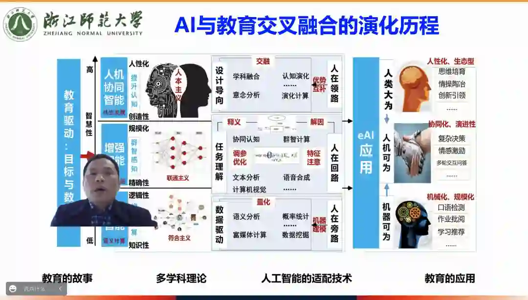 浙江师范大学智慧教育研究院副院长、浙江省智能教育技术与应用重点实验室主任黄昌勤教授做了题为《AI与教育交叉研究的理论、方法与实践——兼谈F0701申报进行实战》的报告。