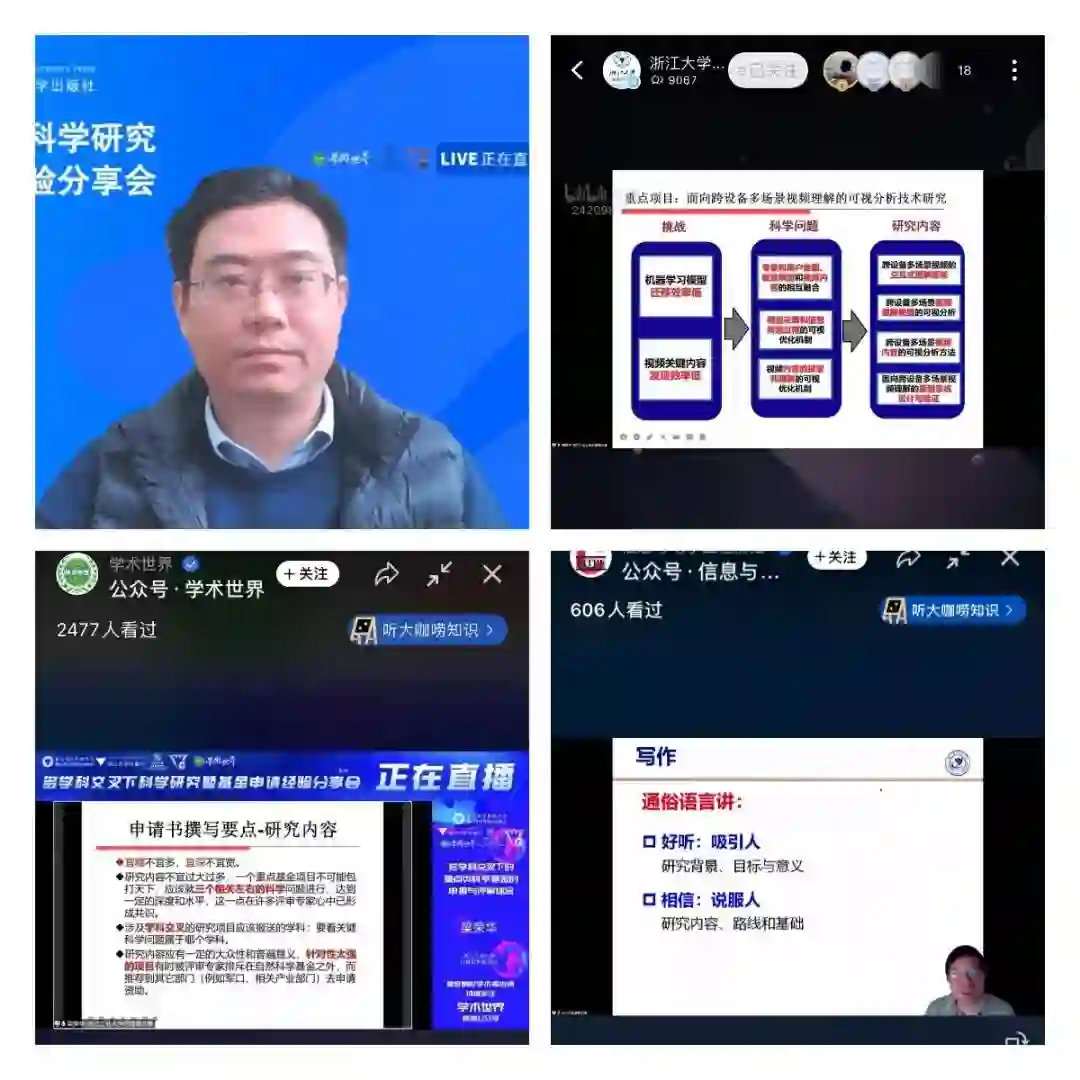 2月12日上午,由浙江省计算机学会、浙江省计算机行业协会、浙江省计算机类专业教学指导委员会、浙江省大数据与人工智能类专业教学指导委员会、浙江省大学计算机课程教学指导委员会共同主办,浙江大学出版社承办的“多学科交叉下科学研究暨基金申请经验分享会”,通过bilibili直播间、微信视频号等线上平台举行。