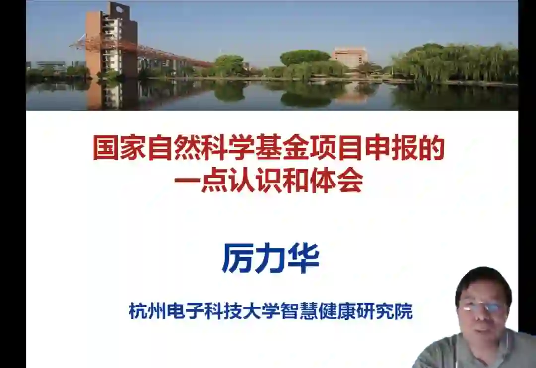 杭州电子科技大学智慧健康研究院院长厉力华教授就国家自然科学基金项目申报谈了自己的认识和体会:(1)青年、面上、重点项目的区别。①从深度与广度上讲,青年项目主要是培养青年人才;面上项目重视自主选题,创新研究;重点项目需要在一些重要领域有所突破。②从项目负责人来看,青年项目重视创新潜力;面上项目了解某些领域的一些现状和动态等;重点项目在某个领域中凝练重要科学问题。(2)项目申报的几个要素。①实力:包括个人实力、团队实力、单位实力。这是一个综合性的体现。②写作:要吸引人,要能说服人。要有假说,要有验证。选题恰当,扬长避短;逻辑清晰,环环相扣;语言流畅、图文并茂。这是可以短时间提升的。③关系:关系不等于不正之风,它的内涵包括在领域内的影响力、科研声誉、认同度等,是软实力的综合体现,可通过访问交流与合作、参加学术会议等方式来获得。这是需要长时间积累的。④运气:由于申报数量、质量以及评审专家个人喜好和背景的不同,存在一定的随机性和相对性。
