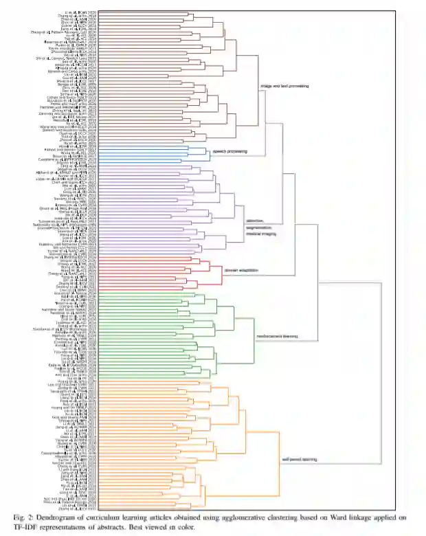 从简单的样本到困难的样本,以一种有意义的顺序,使用课程学习可以提供比基于随机数据变换的标准训练方法更好的性能,而不需要额外的计算成本。课程学习策略已成功地应用于机器学习的各个领域,广泛的任务。然而,必须找到一种方法来对样本从容易到难进行排序,以及正确的节奏函数来引入更难的数据,这可能会限制课程方法的使用。在本综述中,我们展示了这些限制是如何在文献中被处理的,并且我们为机器学习中的各种任务提供了不同的课程学习实例。我们根据不同的分类标准,手工构建了一个多角度的课程学习方法分类。我们进一步使用凝聚聚类算法建立课程学习方法的层次树,将发现的聚类与我们的分类方法联系起来。最后,我们对未来的工作提出了一些有趣的方向。