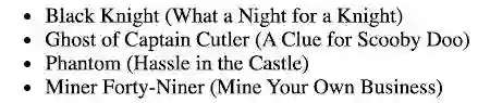 {characters: [{ episode: [Object], name: 'Black Knight' },{ episode: [Object], name: 'Ghost of Captain Cutler' },{ episode: [Object], name: 'Phantom' },{ episode: [Object], name: 'Miner Forty-Niner' }]}