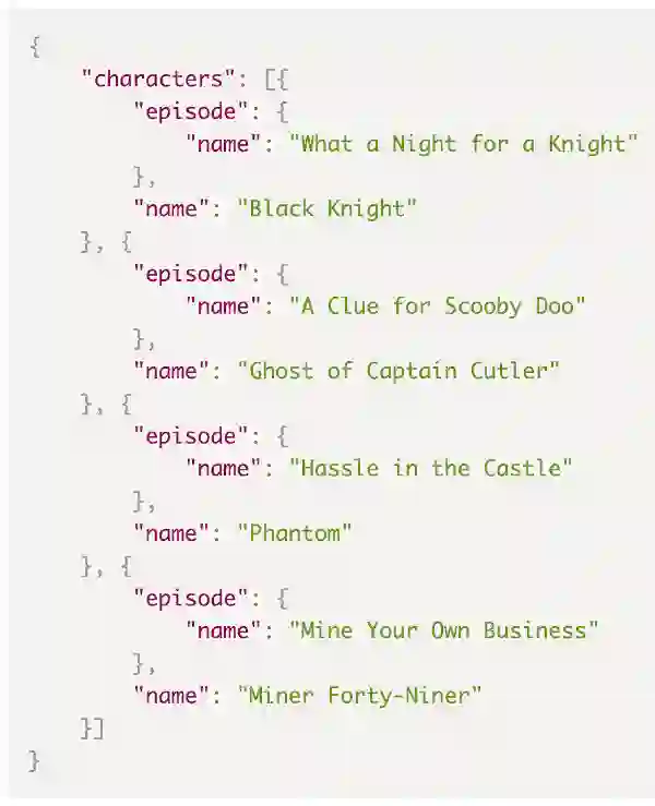 运行以上代码的结果是 JSON 响应,其中包含浏览器中显示的角色和剧集数据。