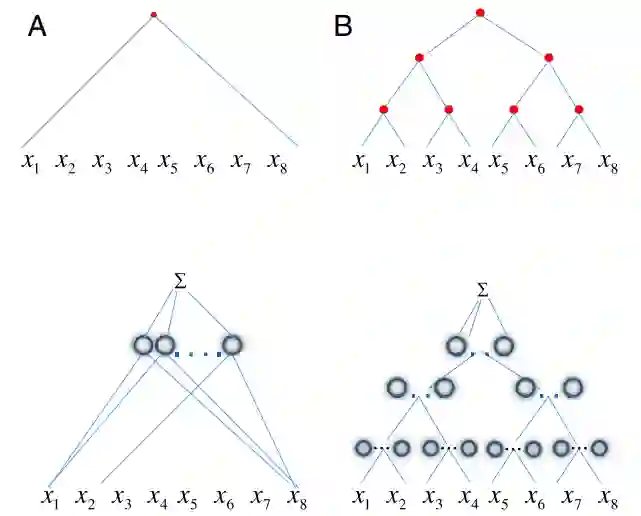 如下图 1 所示,网络中的每个节点对应于要近似的函数的图中的节点。结果发现,深度网络具有比浅层网络更好的近似能力。