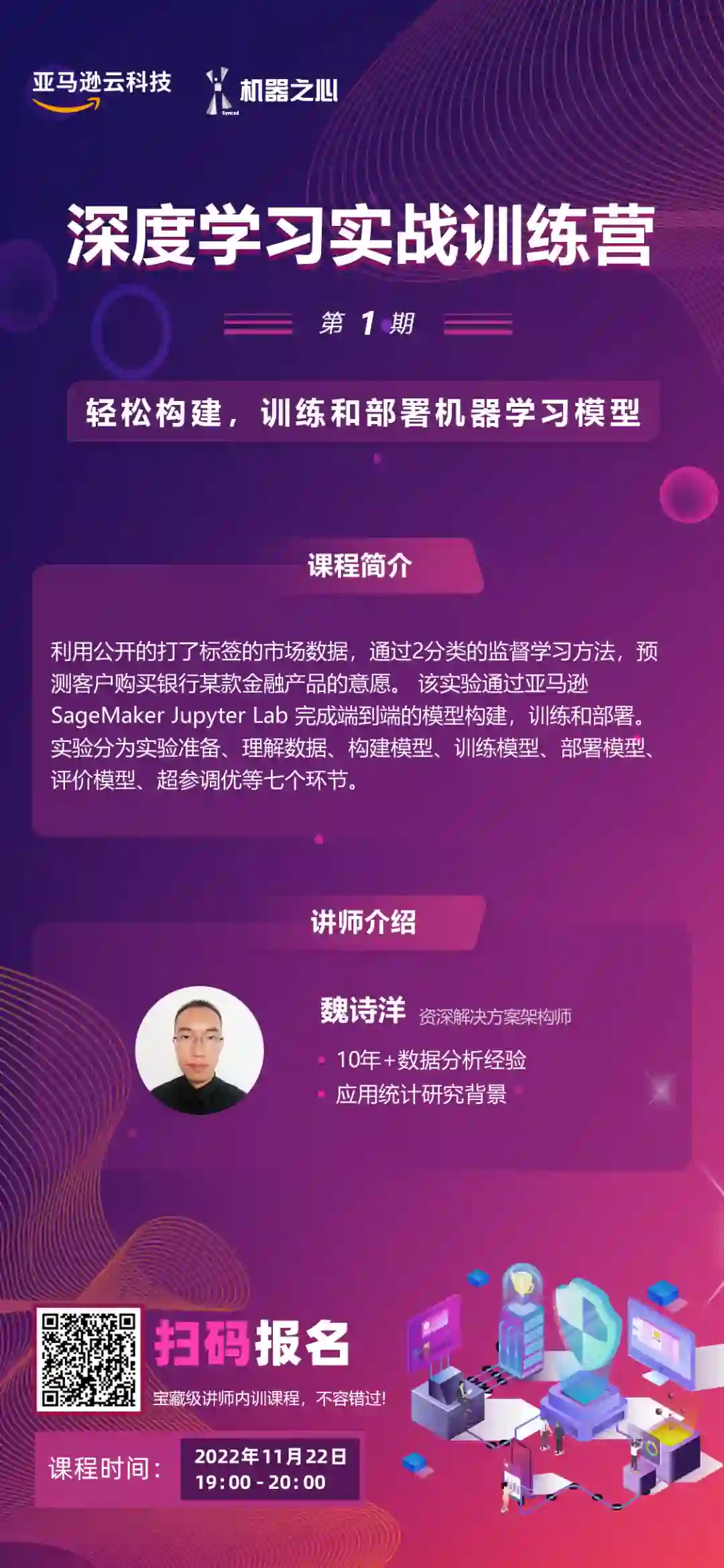 为了帮助开发者快速提升实战能力,机器之心联合亚马逊云科技开设了《深度学习实战训练营》线上实战营。实战营为期3周,共6次课程,还有6次课后作业,实战营期间讲师将在答疑群中随时解决同学的疑问,全程免费,欢迎希望上手实操深度学习的同学加入学习。