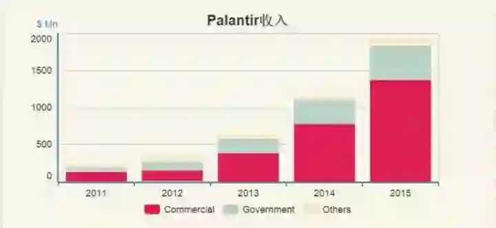 Palantir的转型也颇为成功,不断扩展到华尔街和各种商业公司,到2015年政府部门贡献的收入已经占到25%以下,在收入多元化方面进展神速。