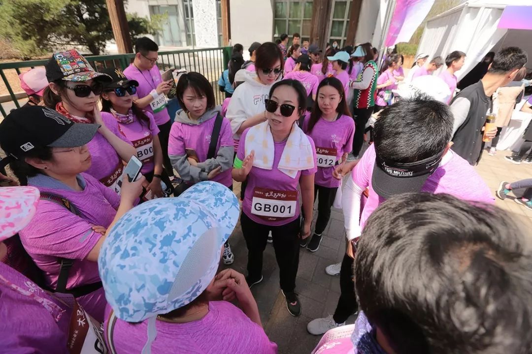 开跑前,何振红为木兰和队员们加油打气。