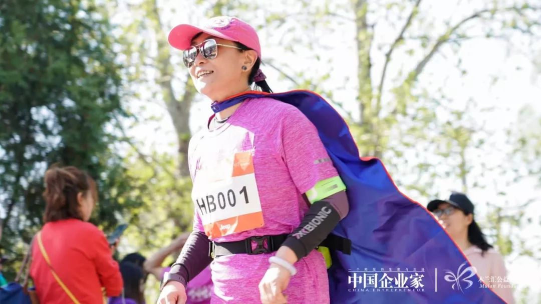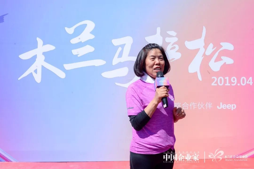 “为什么要举办马拉松?因为快乐。”《中国企业家》杂志社社长、木兰汇理事长何振红在现场为木兰跑友们加油助威。