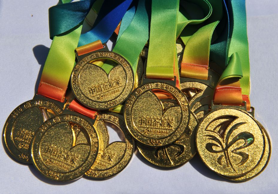 金光闪闪的奖牌已就位。