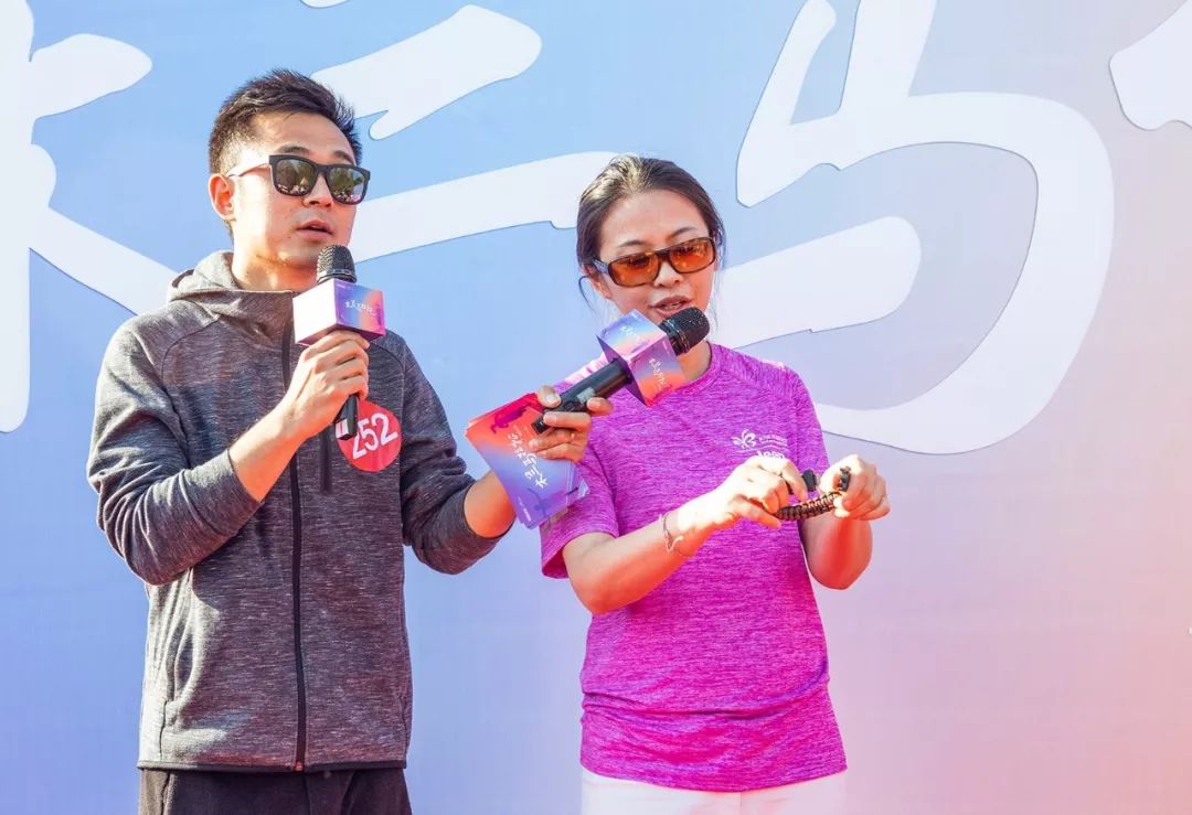 Jeep生态营销总监沈颖向大家介绍此次Jeep特地为木兰马拉松定制的户外救援手环。