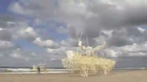 荷兰动感雕塑艺术家Theo Jansen发明的风力仿生兽Strandbeests