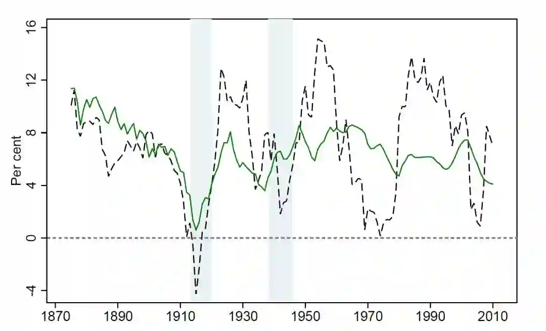 不论是研究收入不平等的经济学家,还是关注投资收益的金融从业者,再或是制定经济政策的政府官员,资本回报率始终是他们眼中最重要的经济指标之一。然而,现有研究对资本长期回报率的测算尚显不足。例如,通常占一国近一半财富的房地产一直未被涵盖。Òscar Jordà, Katharina Knoll, Dmitry Kuvshinov, Moritz Schularick和Alan Taylor 五位学者于2019年合作发表在Quarterly Journal of Economics上的论文 “The Rate of Return on Everything, 1870–2015” 基于全球16个发达经济体横跨150年的经济数据,首次测算了包括房地产在内的主要资产的长期回报率,推进了此领域的研究。