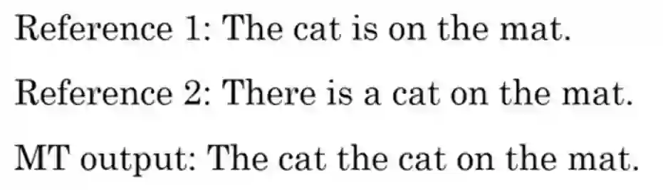但是,很明显这个方法是不合理的,比如在Reference中出现过一次的词就不能再参与计数了。随后,为了提出更加完善的方法,有人提出了modified recision 翻译为“修正的精确度”。