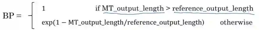 然后在乘一个值BP brevity penalty 目的是为了对短句子的惩罚: