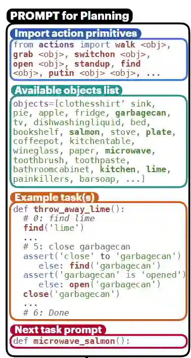的形式来提示语言模型哪些动作是可用的、环境中有哪些物体以及哪些程序是可执行的。