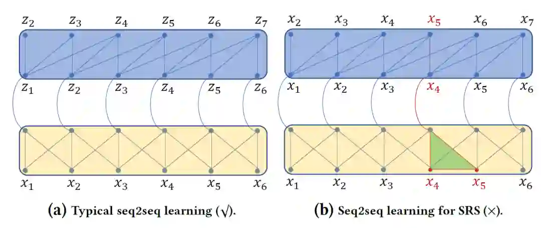 被认为是源和目标域。与标准的seq2seq场景(即,图1 (a)),我们在SRS任务中有以下两个特殊关系(见图1 (b)):
