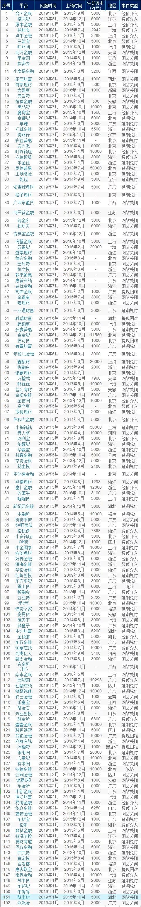 附:截止2019年9月P2P企业“爆雷”名单,图片来源:网贷之家。